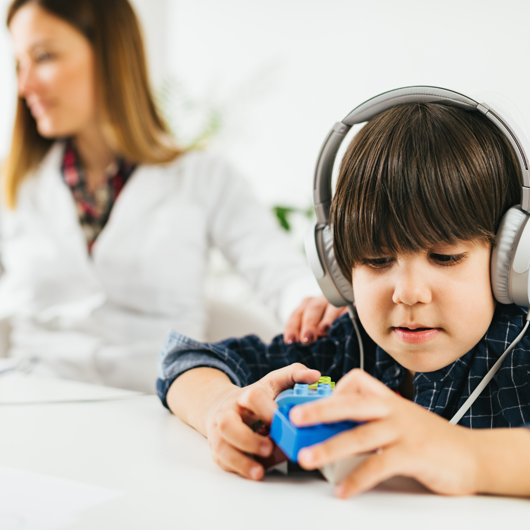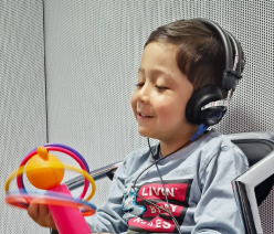 Examen de audiometría que se realiza a niños entre los 3 a 6 años para determinar niveles de respuesta mínimos (umbrales auditivos).
